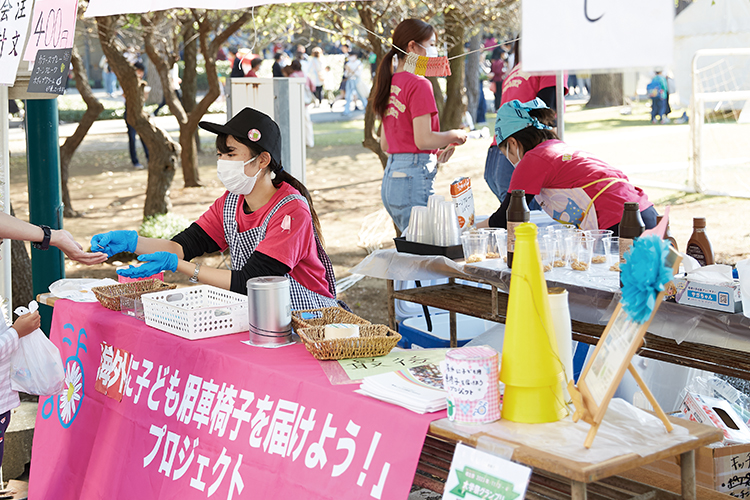 相生祭では「海外に子ども用車椅子を送る会」のスタッフたちと、模擬店でチョコバナナのお店を出しました。活動のPRにもなりました。
