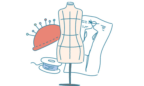 衣装制作、アパレルビジネス、トレンド分析、デザイン史など、ファッションに関して幅広く学びます。