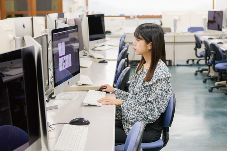 制作系科目ではコンピュータに関する基礎知識など、アウトプットするための知識と技術を修得します。研究系科目ではメディアに関する知識を蓄え、広い視野を身に付けます。