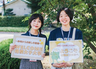 オープンキャンパスの日は、ボランティアスタッフとしてお手伝い。大学の伝えたいことと参加者の求めていることをつなぐ、大事な役割です。