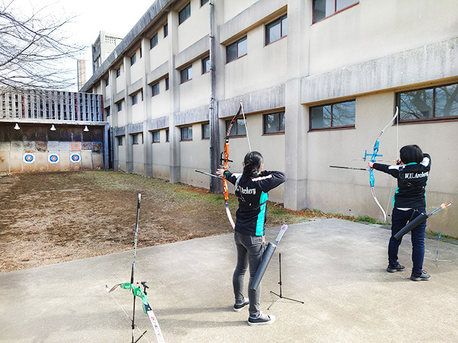 少しでもアーチェリーに興味のある方や、実際に体験・見学してみたいという方は、マーガレット本館1階学習・生活支援課前に掲示している、アーチェリー部紹介ポスターにあるメールアドレスまでご連絡ください!部員一同お待ちしております!