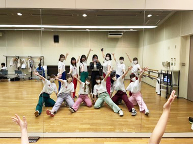 女性アイドルの曲を中心にコピーダンスをし、大会や相生祭などのイベントに出演しています。ステージで踊る演者と、衣装制作や動画編集を行う裏方、どちらも随時募集しています!少しでも興味がある方はぜひ気軽に見学にお越しください♪