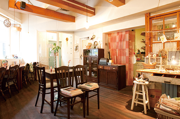 ゆったりくつろげるおしゃれなカフェ。一番人気のスイーツは「おイモのクランブル」。かわいい雑貨も販売しています。