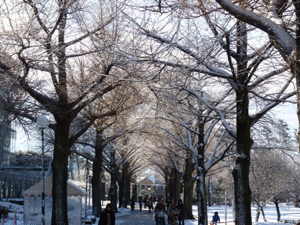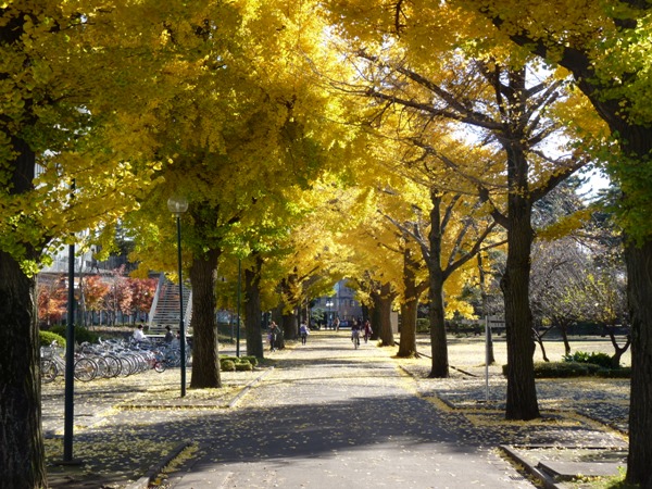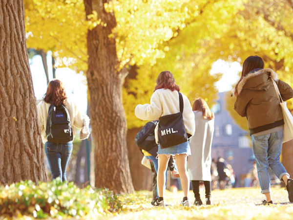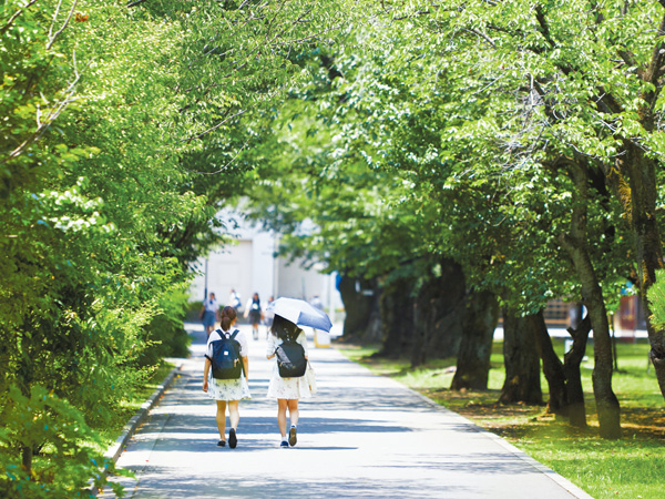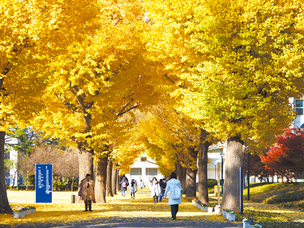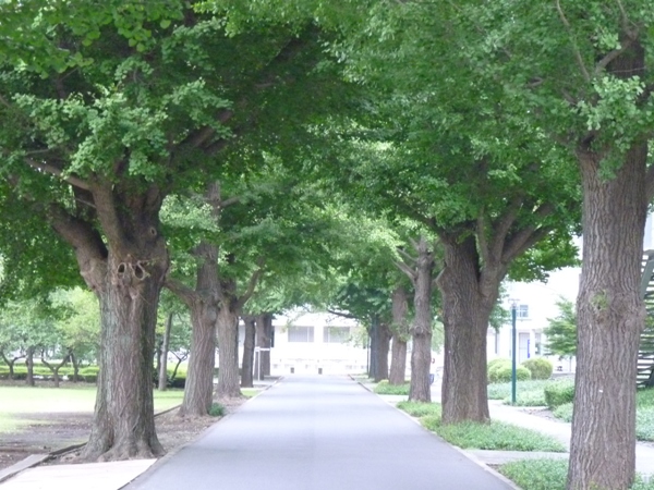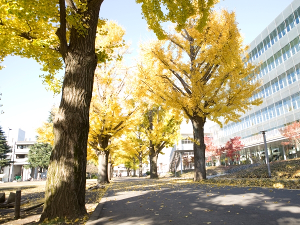 大学グラウンドを囲む並木道は、四季折々、様々な色を見せてくれます。