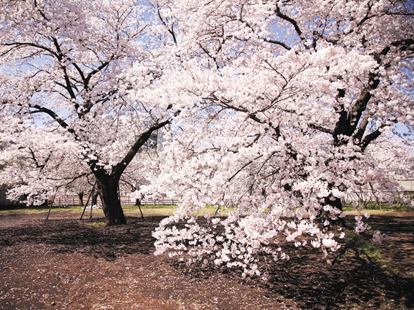 グラウンドの桜並木をはじめ、相模原市の登録名勝として保存されているフランス庭園の枝垂桜、樹齢100年ともいわれる「百年桜」は必見です。一般の皆様へも開放されており、毎春、桜の季節にはこの「百年桜」を見に来る方が多く見られます。