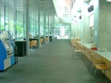 2階のラウンジには、自由に使用できるパソコン、自動販売機などの設備があります。授業の合間の休憩などに利用できます。