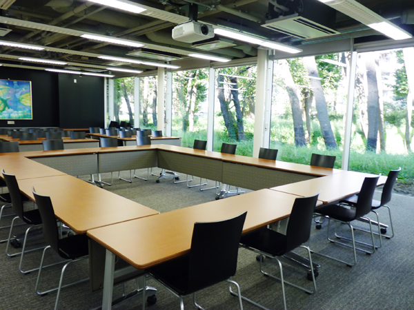 2階には、主にゼミ室となります。全面ガラス張りの開放感あふれる空間です。