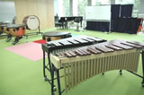 子ども教育学科では、様々な楽器や道具がいっぱいあります。子どもの目線にたって様々な遊びを覚えましょう。