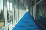 廊下は大学グラウンドに面しており、マーガレットホール、小学部などが一望できます。