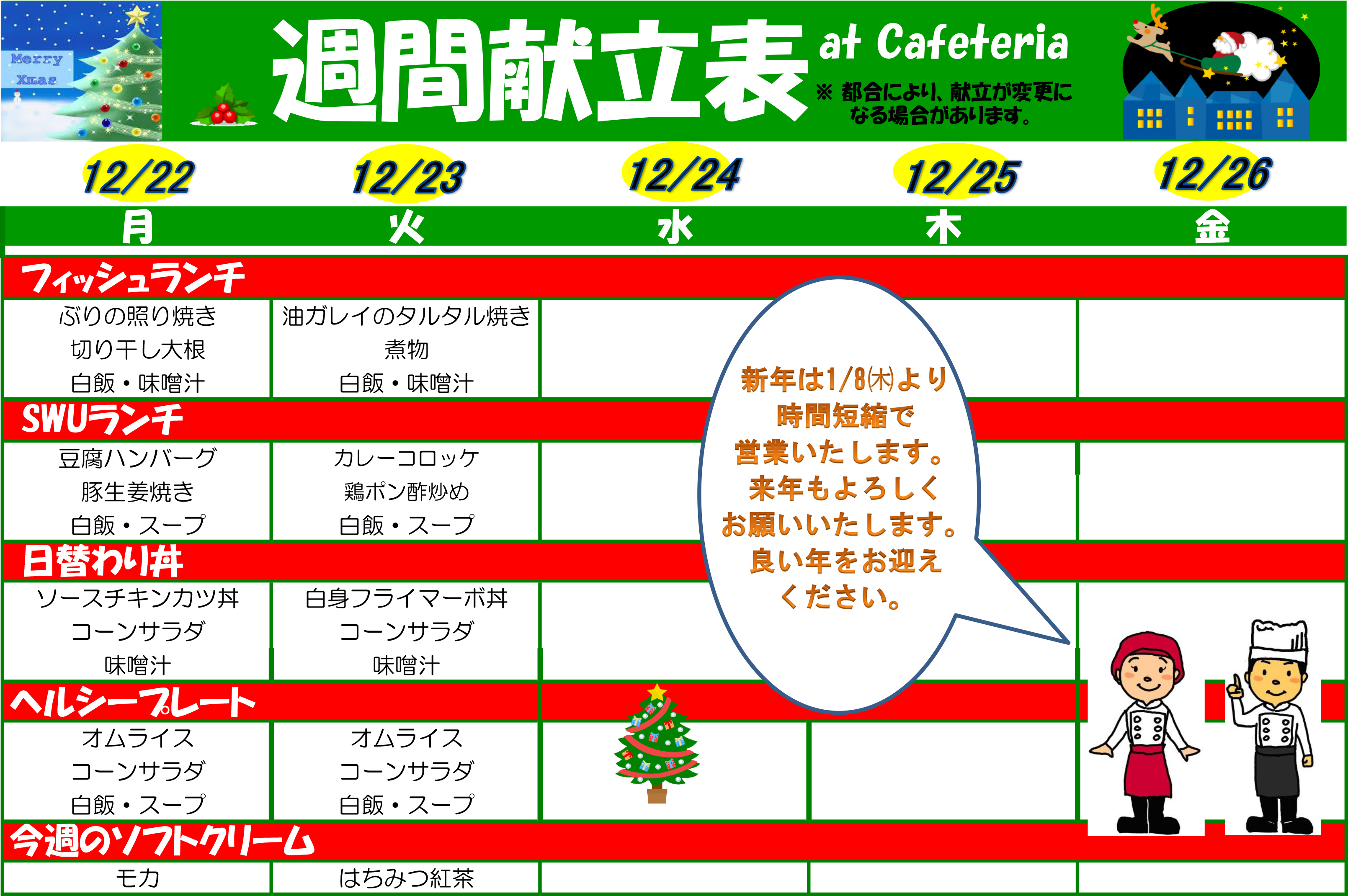 食堂および売店等の冬季 営業・休業につきまして 、下記 のとおりお知らせ致します。