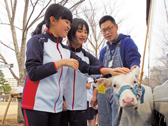 酪農家見学相模女子大学の学生がつくった酪農家の愛情を描いた絵本が、学生自身の読み聞かせで、牛乳に込められた物語として披露されます。酪農家の方と仔牛を招き、仕事の苦労や喜びを伺うとともに、乳牛からの贈り物である牛乳を大切にいただきます。