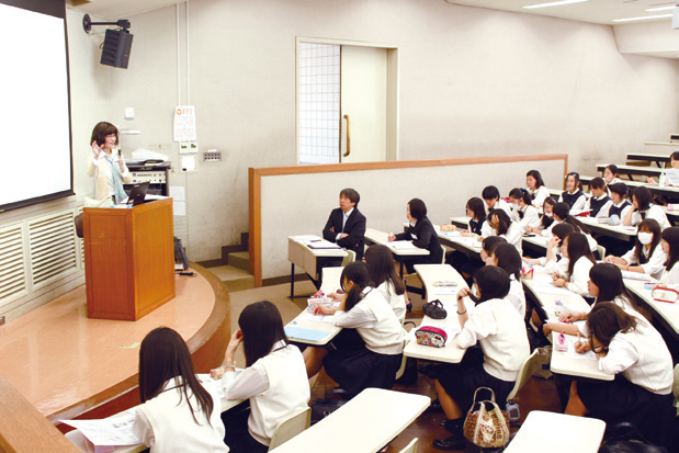 高大連携講演会相模女子大学の教員が講演を行い、一足先に大学の講義を体験できる「高大連携講演会」。複数の講座のなかから、興味のある講義を選択。学問の入口を体験することで、卒業後の進路を考えるきっかけとなります。