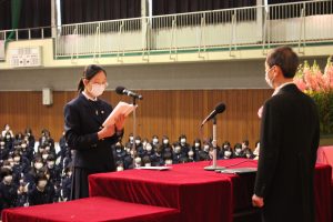 【中高】4/6入学式 入学おめでとうございます2022 / 04 / 08 中高本日、相模女子大学中学部・高等部の入学式が行われました。会場での密を避けるため、午前中に高等部、午後に中学部の2回に分けて実施され、中学部1年生に85名、高等部1年生に399名の新入生を迎えました。保護者の参列者数に制限がありましたが、ご協力いただき無事に執り行うことができました。新入生の真新しい制服に身を包んだ姿や、緊張と喜びが混じった初々しい表情がとても印象的でした。校長からは新入生に「結果よりプロセス、成果より成長を大切にする学校生活に」という言葉が贈られました。