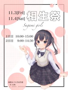 【相生祭】中高用のチラシが完成!2023 / 08 / 10 相生祭中高相生祭に向けて準備が進んでいます11月3&4日に行われる相生祭に向けた相模女子大学中学部高等部のチラシが完成しました!恒例の市中パレード、模擬店、スタンプラリー、打ち上げ花火などイベント目白押しです!みなさまのご来場をお待ちしております!!2023年 相生祭HP
