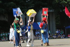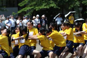 本校の体育祭は、中学部・高等部の合同開催。赤・青・黄・緑の4色に分かれて、学年の垣根を越えた白熱した戦いが繰り広げられました。
