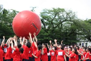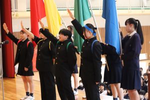 昨年度3学期に始動した体育祭運営委員(高3年8名、高2年3名、中2年5名)が、各クラスの実行委員と力を合わせて体育祭を盛り上げました。