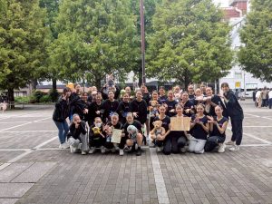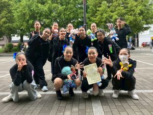 中学生は部員全員で、遠く高く羽ばたく鳥たちをテーマに、堂々と大きく演技。全審査員から1位の成績をいただき、文句なしの特別賞『横浜市教育委員会賞』の受賞となりました。初心者で入部した1年生も、今ではすっかり頼もしく成長しました。幕張メッセで行われる全国大会でも、さらに伸びやかな演技ができるように盛り上がっていきます。