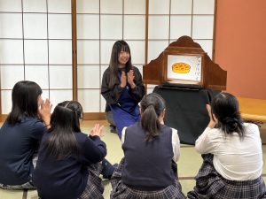 【図書館】大学生による「紙芝居の読み聞かせ」実施2025 / 10 / 27 高等部高等部生が本学司書課程の学びを体験10月11日、相模女子大学の司書課程を履修している大学生による「紙芝居の読み聞かせ」が大学附属図書館で行われました。今回の企画は、11月に相模大野ユニコムプラザで行われる『紙芝居を通じて世界とつながろう』企画のリハーサルを兼ねています。興味のある高等部生が参加し、地域連携を積極的に行う本学司書課程の学びが体験できる機会となりました。図書館や司書課程に興味のある生徒は大学での学びをイメージできたようで、企画後の雑談も盛り上がりました。 (司書教諭)