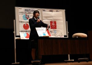 また、高3の特別出演では、これまでの探究活動における学びがどのように大学入試へとつながっていったのか、という話をしてくれました。物を使ったプレゼンテーションは説得力があり、聴衆に深く伝わりました。