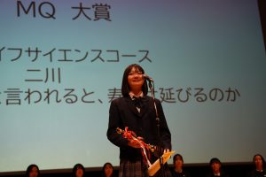 2026年2月14日(土)、相模女子大学グリーンホールにて「MQ Awards 2025」を実施しました。高校2年生の各コース代表者9名が、これまでの探究活動の成果を発表する場です。