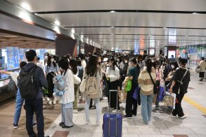 いよいよ最終日となる4日目。この日は、瑞鳳殿( 伊達政宗公霊屋)コース・仙台城跡(青葉城)コース・ 楽天モバイルパークコースの3コースに分かれて見学・散策し、 その後仙台市内での班別自主行動となりました。まずは歴史・ 文化・風土に触れてから、 ショッピングや昼食を楽しむという計画でした。 天候は次第に下り坂に向かい、 少し雨に降られた時もありましたが、 3泊4日の締めくくりとして、最後の行程を満喫していました。 仙台駅へ集合した生徒たちの弾んだ会話からは、「牛タン」「 ずんだ」「笹かま」など、 ご当地名物の食べ物が次々に聞こえてきて、 存分に楽しんだ様子をうかがい知ることができました。