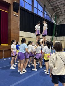 千葉明徳高等学校の方々との練習では、タンブリング練習・基礎練なども参加させていたきました。温かく迎えていただきとても楽しく練習に参加することができました!スタンツも一緒に組んでいただいたので、教えていただいたことを学校でも練習し大会本番でバシッと決めます!