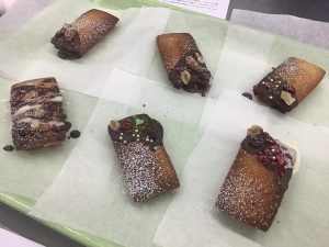 先生のお手本を真似て大人っぽく仕上げる生徒、欲張ってチョコもフルーツも山盛りにする生徒……各々の個性がお菓子にも表れます。最後はラッピングをして完成!