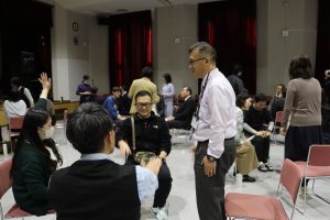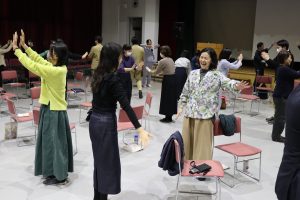 「表現」のプロから、新年度のクラスづくりや授業開きに活かせるヒントを直接伝授していただきました。研修では、教員自身がワークを通じて自己解放を体感し、学年や教科の垣根を越えて対話を楽しむ姿が見られました。
