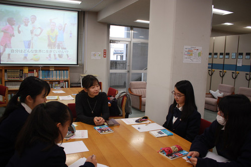 今回の読書会には、1997年の設立当初からのメンバーである事務局長の白木さん、インドでのプロジェクトを担当する田柳さんが参加してくださいました。田柳さんは、3年間にファストファッション流行の裏側にある児童労働の問題についてご講演いただいたのに続き、2度目の来校です。