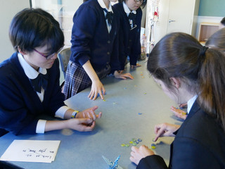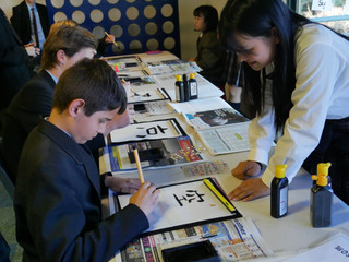 いよいよ参加者15名が頑張って準備をしてきた「日本文化紹介」です。今年の出し物は…「書道」、「茶道」、「折り紙」、「アルファベット版かるた」、そして「おはじき」です。