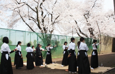 弓道部は毎週月・水・土曜日の3日間、練習しています。相模原市弓道協会の先生方を学校に招き、射の技術だけでなく礼儀作法も指導していただいています。土曜日には市の弓道場へ行くこともあり、試合や初段、二段を取得する審査に向けて練習を重ねています。また年に2回、校内で射会を行い、競技力の向上を図っています。優勝から6位までを決め、賞品もいただけるので、毎回とても盛り上がります。弓道は3年間を通してとてもやりがいがあり、充実した高校生活を送ることができる競技です。