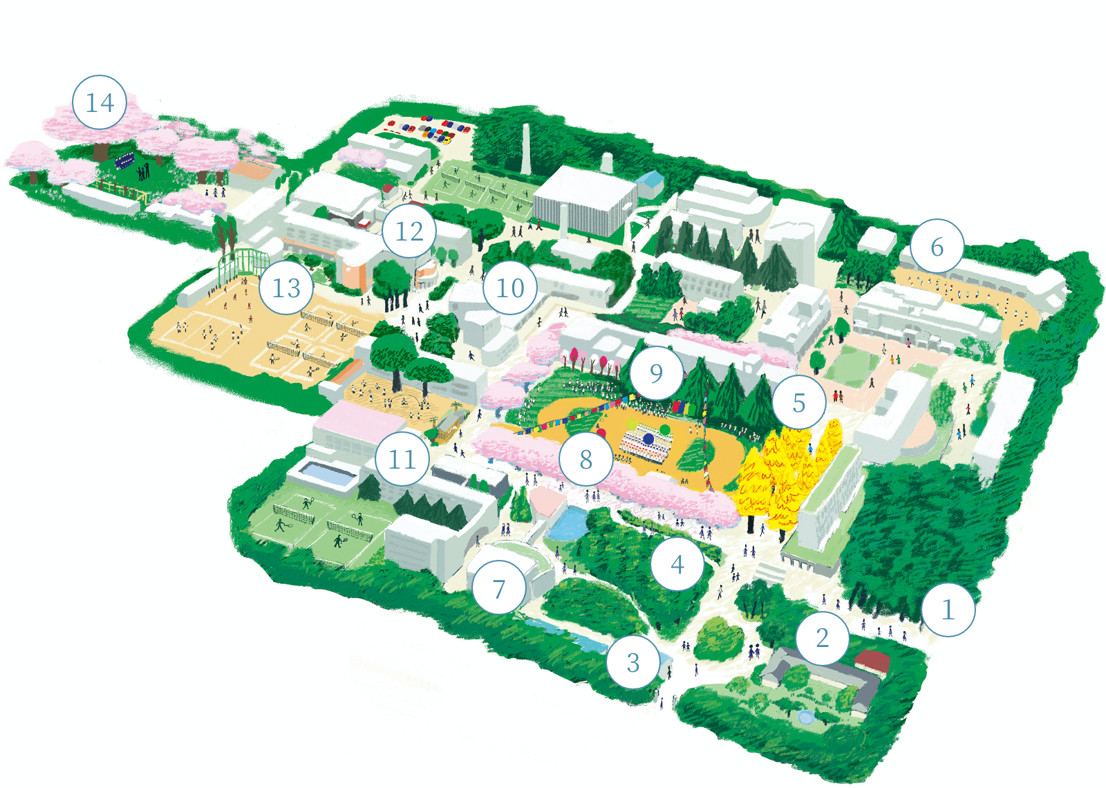 相模女子大学は、幼稚部から大学院までを擁する総合学園です。正門から一歩足を踏み入れると広がる、緑豊かな環境。学園内はゆったりと穏やかな時間が流れています。