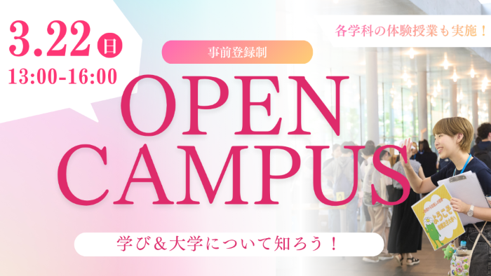 オープンキャンパス ページ内目次 ※現在は2026年3月22日(日)までの事前登録が可能です。 当日のイベント詳細・事前登録は【3月22日(日)】のアイコンをクリックしてください。 入試に関わるお問い合わせ 電話:0120-816-332 携帯電話から:042-749-5533 2026年度年間スケジュール (PDF ファイル 0.36MB) オープンキャンパスの参加にあたって、よくある質問 (PDF ファイル 0.38MB) オープンキャンパス 2026.3.22[事前登録制] 関連リンク 交通アクセス キャンパスマップ 個人での見学について