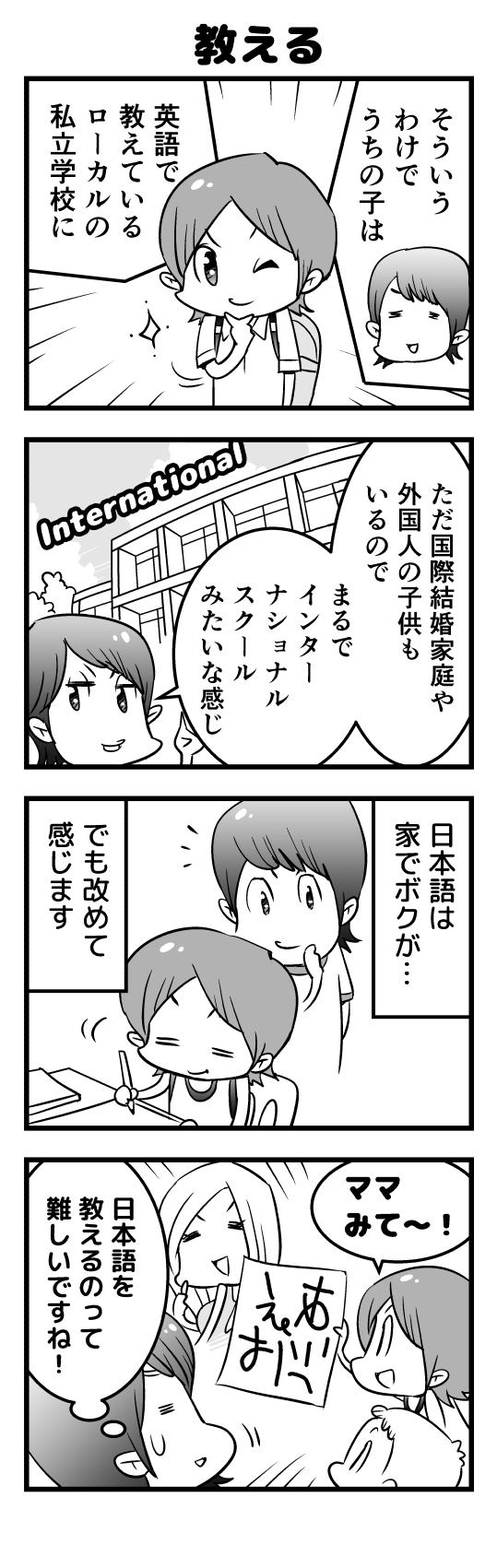 越境する結婚移住者の教育観に関する基礎調査(日本語) ページ内目次 中国・上海在住 斎藤さん(34歳)の場合 韓国・ソウル在住 藤田さん(38歳)の場合 タイ・バンコク在住 平野さん(45歳)の場合 フィリピン・マニラ在住 三浦さん(36歳)の場合 PDFファイルをご覧になるためには、AdobeReader® が必要です。パソコンにインストールされていない方は右のアイコンをクリックしてダウンロードしてください。 中国・上海在住 斎藤さん(34歳)の場合 全部見る (PDF ファイル 1.22MB) ページ別 01.中国・上海在住 斎藤さん(34歳)の場合 (PNG ファイル 0.15MB) 02.ラッキー!? (PNG ファイル 0.15MB) 03.心配 (PNG ファイル 0.16MB) 04.教育 (PNG ファイル 0.15MB) 05.ちなみに… (PNG ファイル 0.14MB) 06.チャンス (PNG ファイル 0.14MB) 07.簡単? (PNG ファイル 0.14MB) 08.空気 (PNG ファイル 0.15MB) 09.将来 (PNG ファイル 0.15MB) 10.本音 (PNG ファイル 0.16MB) 韓国・ソウル在住 藤田さん(38歳)の場合 全部見る (PDF ファイル 1.27MB) ページ別 01.韓国・ソウル在住 藤田さん(38歳)の場合 (PNG ファイル 0.14MB) 02.上達 (PNG ファイル 0.16MB) 03.まずは・・・ (PNG ファイル 0.17MB) 04.英語幼稚園 (PNG ファイル 0.16MB) 05.日本人学校 (PNG ファイル 0.17MB) 06.歴史教育 (PNG ファイル 0.16MB) 07.能力 (PNG ファイル 0.14MB) 08.子育てサークル (PNG ファイル 0.13MB) 09.韓国化!? (PNG ファイル 0.18MB) 10.日本語教育 (PNG ファイル 0.15MB) タイ・バンコク在住 平野さん(45歳)の場合 全部見る (PDF ファイル 1.25MB) ページ別 01.タイ・バンコク在住 平野さん(45歳)の場合 (PNG ファイル 0.15MB) 02.タイ好き (PNG ファイル 0.14MB) 03.タイ語オンリー (PNG ファイル 0.16MB) 04.日系幼稚園 (PNG ファイル 0.15MB) 05.小学校選び (PNG ファイル 0.15MB) 06.日本語テスト (PNG ファイル 0.16MB) 07.再面接 (PNG ファイル 0.16MB) 08.日本人学校 (PNG ファイル 0.14MB) 09.悩み (PNG ファイル 0.15MB) 10.将来 (PNG ファイル 0.14MB) フィリピン・マニラ在住 三浦さん(36歳)の場合 全部見る (PDF ファイル 1.29MB) ページ別 01.フィリピン・マニラ在住 三浦さん(36歳)の場合 (PNG ファイル 0.14MB) 02.セブ (PNG ファイル 0.16MB) 03.就職 (PNG ファイル 0.16MB) 04.フィリピンのイメージ (PNG ファイル 0.17MB) 05.マニラに移住 (PNG ファイル 0.14MB) 06.家でのことば (PNG ファイル 0.15MB) 07.メインの言語 (PNG ファイル 0.17MB) 08.やっぱり英語 (PNG ファイル 0.17MB) 09.世界とつながる (PNG ファイル 0.16MB) 10.教える (PNG ファイル 0.17MB)
