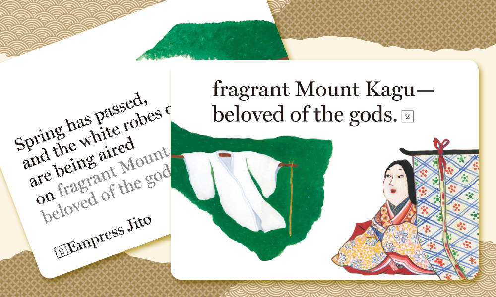 私が日本の和歌に心を寄せることになった理由は、ここにあるのかもしれません。日本の歌人たちは現代の私たちのようにモノには恵まれていなかったけれど、心は大変豊かだったからです。例えば、百人一首の1番目の天智天皇の歌も、貧しくても心が豊かである例として挙げられます。