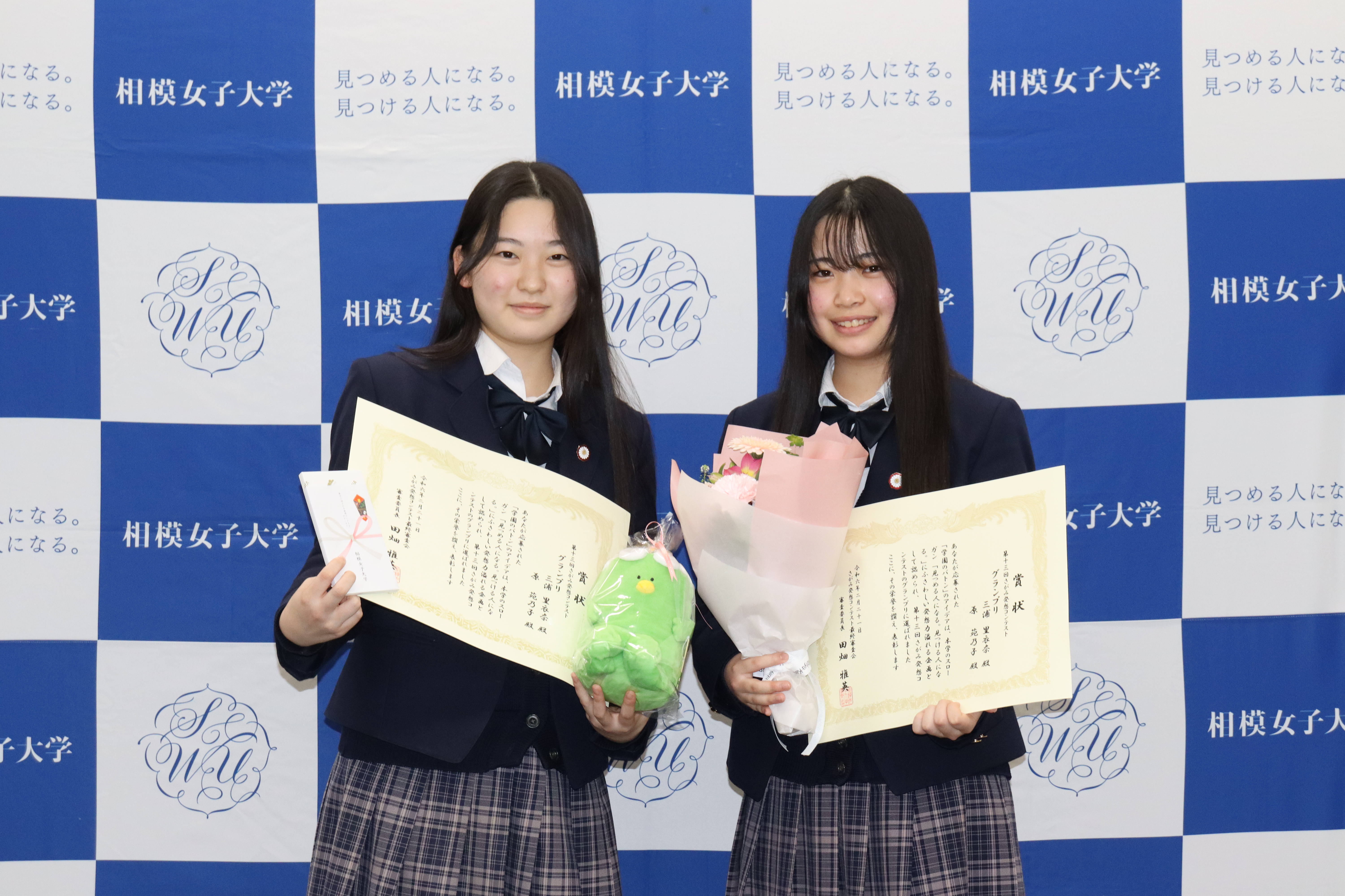 第13回さがみ発想コンテストでは、産学協働の取り組みに代わって、相模女子大学創立125周年記念「ワタシタチの相模女子大学 イメージビデオ制作」をテーマにアイデアを募集し、2024年2月21日(水曜日)に最終審査会を開催しました。一次審査を通過した4組によるプレゼンテーションが行われ、最終審査の結果、グランプリは高等部2年(当時)の三浦里衣奈さん・原苑乃子さんの『学園のバトン』に決定されました。グランプリのアイデアについては、そのアイデアをもとに動画制作が進められ、2024年8月より125周年記念イメージビデオとして、本学YouTubeチャンネルで公開されています。
