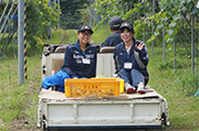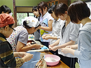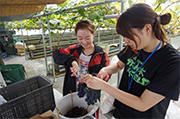 過疎化や高齢化による農業の担い手不足、耕作放棄地増加などへの対策が重要課題となった生坂村は、2011年9月「生坂農業未来創りプロジェクト会議」を立ち上げ、活気・にぎわいに満ちた村づくりへの取り組みの一つとして地域協働活動を実施。本学学生の受け入れは2015年度夏季からスタートし、学生は、葡萄の剪定やそば打ち、炭焼き作業、公共施設の清掃作業などを地域の方と協働することにより、普段とは異なる農村地域の生活を体験しています。