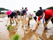 本宮市と本学は、2008年度に農林水産省の事業である「田舎で働き隊!」に学生が参加したことをきっかけに、学生が本宮市での農作業体験や農家民宿を通じて、農村社会や農業を肌で感じ、地域の活性化を目指して10年以上にわたり地域住民と学生が協働しながら活動を行っています。2013年には、これまでの長年の活動を受けて、本宮市内に本学専用農場「マーガレットファーム」が完成しました。