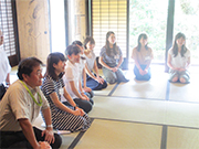 地域の能楽団体「羽茂昭諷会」の方に能楽を教わり、草刈神社の乙祭の前座で仕舞を披露します。能舞台(小泊白山神社能舞台)をお借りしてお稽古をつけていただきます。また、能楽を学ぶ以外にも、民謡「佐渡おけさ」を教わったり、佐渡に数多く伝わる民話を語り部さんにお話いただくなど、佐渡の豊かな文化を味わい地域の方との交流を深められる機会も設けています。学生たちはコテージタイプの宿舎に泊まりこみながら、共同生活を送ります。