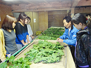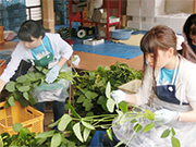 本学では、2015年度から活動がスタートし、地域の食のイベント「おっきリンピック」での富岡市伝承グルメ「おっきりこみ」の販売・PRのお手伝いや洋蘭の栽培、世界遺産「富岡製糸場」の見学などの活動を行っています。学生は、地域の伝統文化や郷土料理などに触れながら多様な活動を通じて農村・先人の知恵を学び、また地域住民との交流を通じて生活の糧となる貴重な知恵をご教授いただいています。また、毎年相生祭(学園祭)の地域物産展では「おっきりこみ」の提供を行っています。