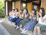 「伝統文化や郷土料理、豊かな観光資源などに触れながら多様な活動を行うことにより、沼田市の良さを都市部で発信・PRしてほしい」「若い女性の感性で『絆づくり』や『新たな地域特産品づくり』、地域の魅力の再発見など、魅力あるふるさとづくりに貢献してほしい」といった地域の方の思いから、2015年度に活動がスタート。学生は、沼田市特産野菜の収穫作業や郷土料理づくり、イベントのお手伝い、「農」や「観光」に携わる地元住民との交流などを通じ、地域の歴史や文化、身近な食の現場等を学んでいます。