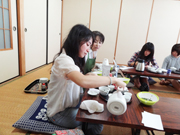 本学では、2013年3月から活動がスタート。学生は、茶園の管理作業を通じて生産者の思いやお茶のことを学び、さらに地元住民の指導により茶作法や闘茶文化を習得しています。2015年2月には、参加学生のアイデアにより、コラボ商品(相模女子大学オリジナル駄菓子「フランス風の駄菓子ミニバッグ」)が誕生しました。また、町内にある和束茶のアンテナショップ「和束茶カフェ」園庭へ学生が茶木を植樹するなど、農や食、文化の体験・PR活動の実施を通じて相互の絆が育まれています。