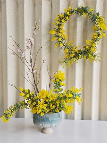 今年はそのミモザの花を使って生け花やリースを作るワークショップを企画しました。