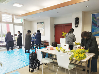 3月8日(土曜日)ミモザのワークショップを翠葉会館1階ロビーで開催しました。参加者は同窓生10名、一般の方4名でした。