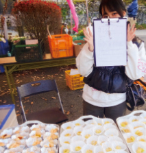 湧口ゼミでは現地から依頼を受け、その土地の自然や文化、農水産物を活用し地域を元気にするプロジェクトを実施しています。農家カフェ・レストランの実現に向けて、とれたてリンゴやサツマイモを使ったスイーツを試作し、祭りの来場者にアンケートを実施しました。