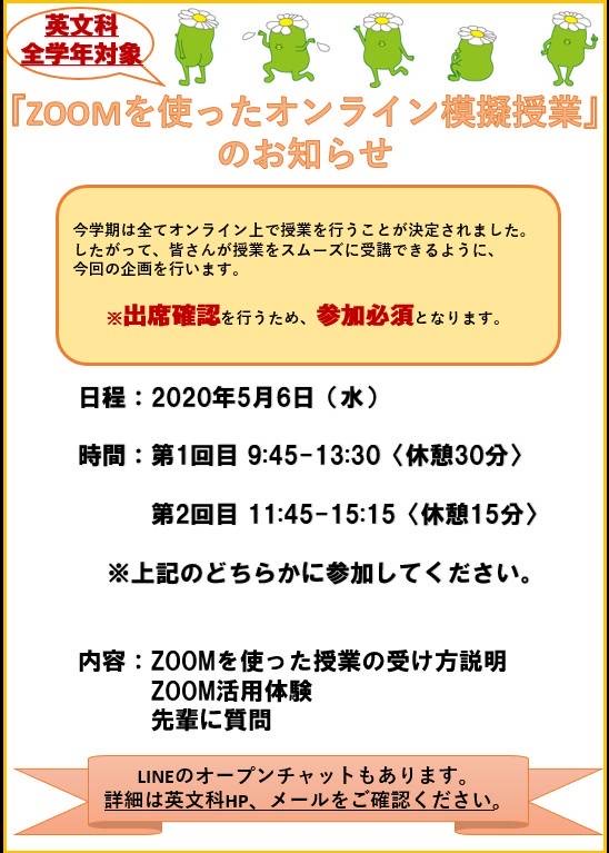 新型コロナウイルスの影響で、春学期中は原則WEB授業の講義形式に変更したことにより、英語文化コミュニケーション学科では5月7日(木)の授業開始に備えて、前日の5月6日(水)に、英語文化コミュニケーション学科全学年を対象に、ZOOMを使ったオンライン模擬授業を開催いたしました。