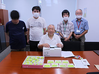 特定非営利活動法人こまくさの会通所作業所「こまくさ工房」の所長を務める、元学芸学部子ども教育学科教授の河尾豊司氏が来校され、利用者の方々が製作した「さがっぱ・ジョー」のパズルやマグネットの木工製品を寄贈頂きました。
