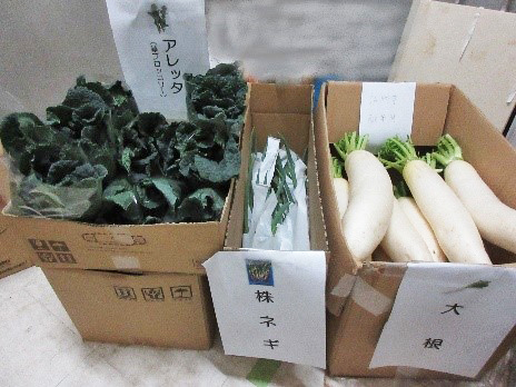 コロナ禍においては近所で手に入る野菜を使用し試作することを原則としておりますが、農産品の地産地消や地元産の新鮮な野菜を実際に手に取り野菜の性質を知ることも大切な学びと考え、提供いただいた野菜を学生に提供しています。