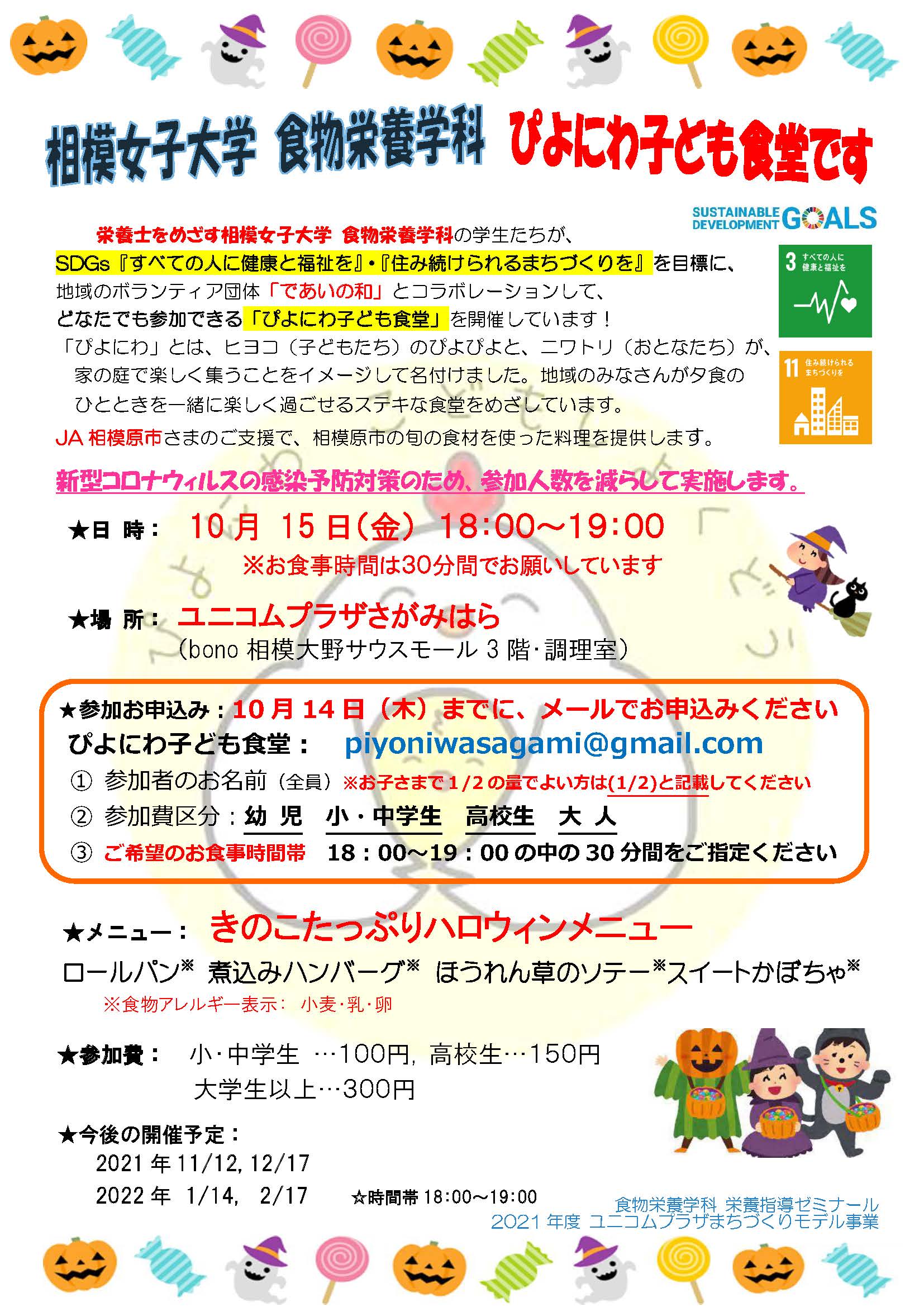 【食物栄養学科】2021年度 第4回『ぴよにわ⼦ども⾷堂』を開催します[10月15日・金曜日]