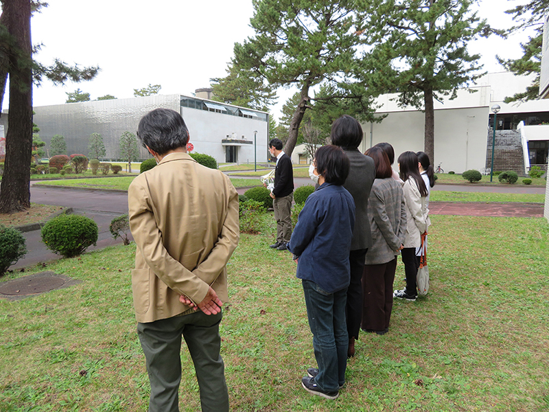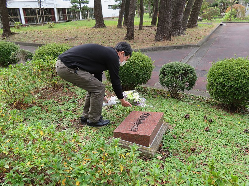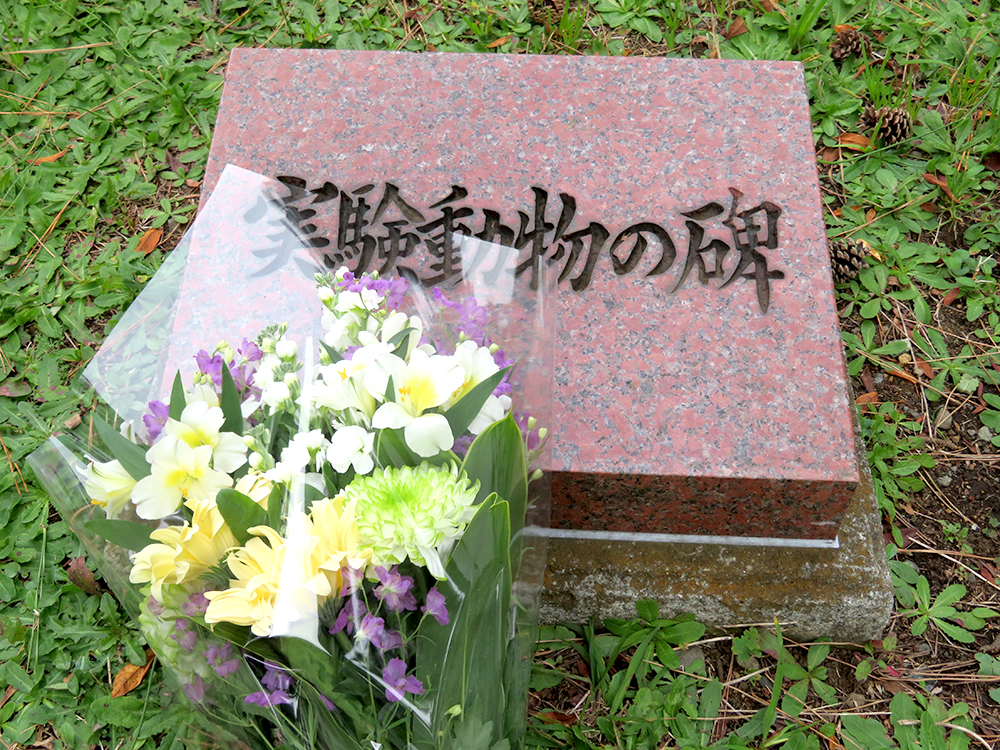 実験動物慰霊祭を行いました 2021年11月19日 11月18日(木曜日)、実験動物慰霊碑を9号館西側に移設後初めて、実験動物慰霊祭が行われ、動物実験に携わる教職員と学生が参列しました。動物実験委員会委員長より、教育研究のために尊い命を捧げられた実験動物への感謝と慰霊の辞が述べられ、献花を行いました。 [学術研究支援課] [学術研究支援課]